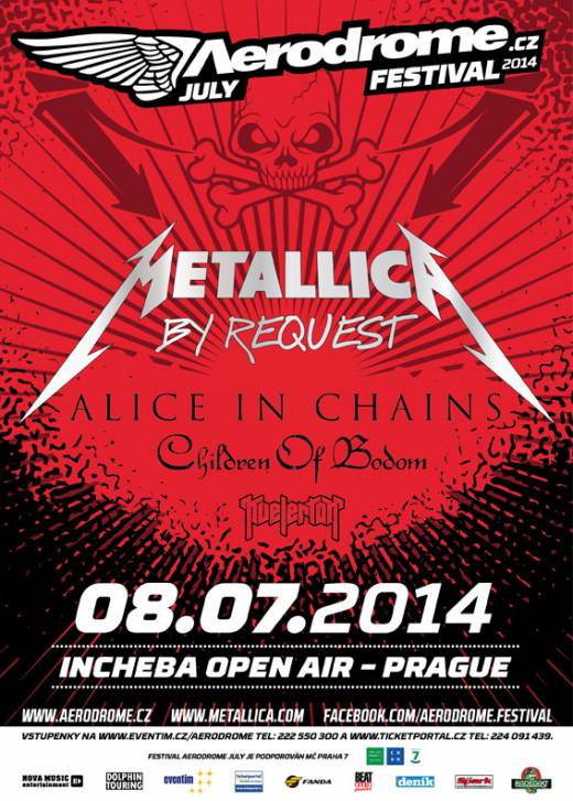 Napsal Aerodrome Aerodrome festival se rozrůstá o další účinkující. Před Metallicou, jejímž vystoupením program na holešovickém Výstavišti 8.července vyvrcholí, vystoupí také grungeoví průkopníci Alice in Chains, finští králové melodického death metalu - Children Of Bodom a naděje norské Metal-rockové scény Kvelertak.
