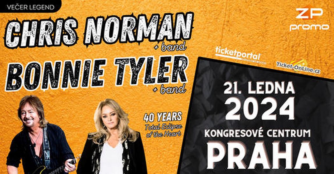 Připravte se na dvakrát tolik hudební radosti a nechte se unést legendárními hlasy světa hudby! Bonnie Tyler a Chris Norman, oba s kompletní kapelou a show plnou největších hitů, předvedou jedinečné koncerty plné nezapomenutelných momentů a v jeden večer! Toto je prostě jedinečná příležitost zažít dvě hudební ikony na jednom místě. Neváhejte a zarezervujte si lístky na tento nezapomenutelný večer ještě dnes.