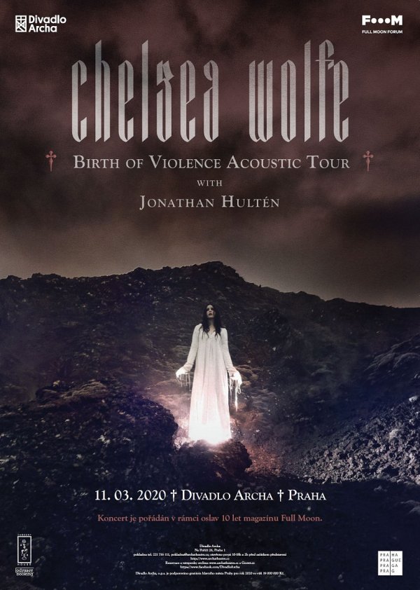 Jen hudba umí vyvolat tak silný pocit zmaru, lásky a krásy zároveň. Chelsea Wolfe se daří v posluchači vyškrábat ty nejniternější emoce a to i za pomoci jemných melodií, přirozeného charismatu a tajemna. Tentokrát ale na hutný tlak její hlasité doprovodné kapely nedojde – v Divadle Archa se americká princezna temnoty Chelsea Wolfe představí v rámci akustického turné na podporu její nové desky Birth of Violence. Večer otevře sólové vystoupení Jonathana Hulténa, kytaristy švédské metalové kapely Tribulation. Koncert se koná u příležitosti oslav deseti let magazínu Full Moon.