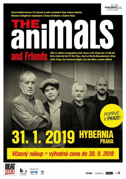 Ve čtvrtek 31.1.2019 a v pátek 1. února 2019 rozezní sál Divadla Hybernia v Praze a brněnského Sono Centra písně jedné z velkých legend druhé poloviny 60. let – skupiny The Animals, která je vedle Beatles či Rolling Stones řazena mezi klenoty britské hudby. Nejen znalcům se hned vybaví zejména písně The House of the Rising Sun či Don't Let Me Be Misunderstood. Předprodej vstupenek byl spuštěn v síti Ticketmaster.